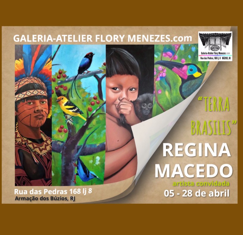 Artista convidada para o mês de abril, nasceu em 1958 em São Paulo, e mantém seu atelier em Brasília. Regina é autodidata, mas desde criança desenha e pinta, participando com frequência de exposições no Brasil e no exterior. A artista é formada em Biologia, e esse amor à natureza fica evidente ao olharmos a sua arte, pois Regina usa seus pinceis para descrever o exuberante mundo natural que nos cerca. Suas temáticas tipicamente retratam o Brasil, refletindo a enorme variedade de etnias humanas e paisagens de norte a sul. Suas telas nos levam a experimentar o mundo natural, criando a oportunidade para nos embrenharmos em uma mata, mergulharmos em um rio, mirarmos estrelas cadentes riscando um céu estrelado, e escutarmos as primeiras notas de um tangará rompendo o silencio da madrugada.