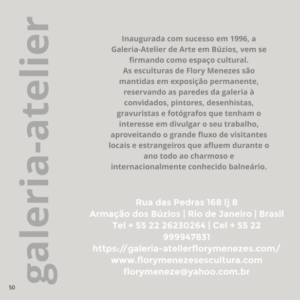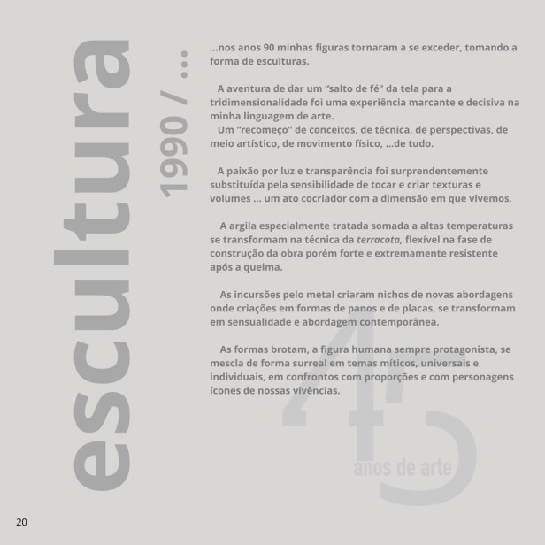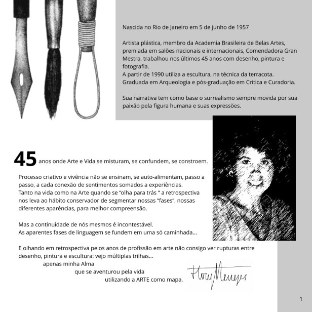 E olhando em retrospectiva pelos anos de profissão em arte não consigo ver rupturas entre desenho, pintura e escultura: vejo múltiplas trilhas…apenas minha Alma….que se aventurou pela vida… utilizando a ARTE como mapa.”