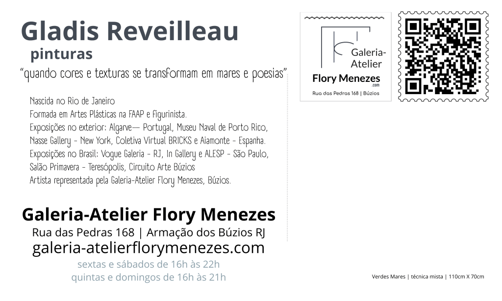 Artista representada pela Galeria-Atelier Flory Menezes, Búzios.