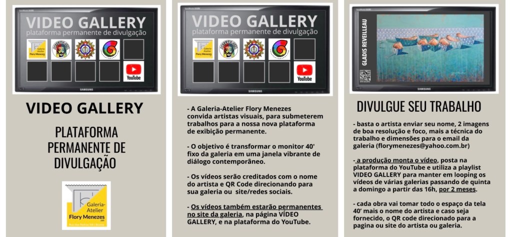 Também estarão permanentes no site da galeria, na página VÍDEO GALLERY, e na plataforma do YouTube.