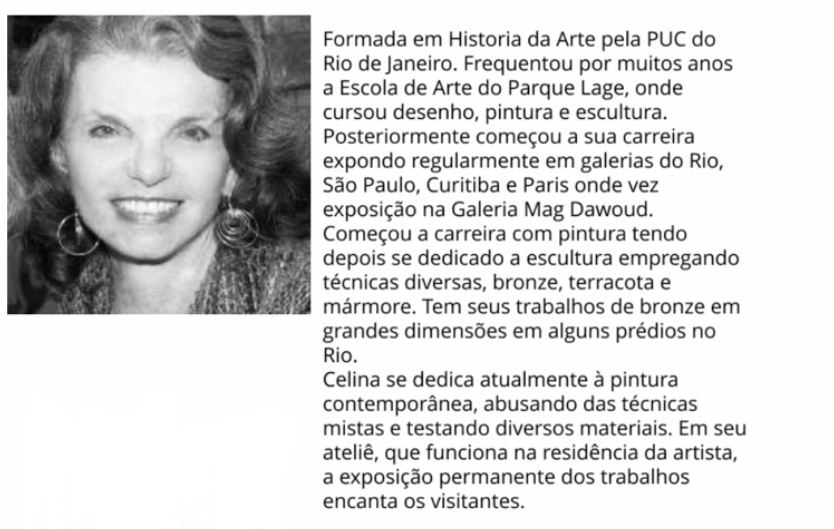 CELINA LISBOA Trabalhos disponíveis na galeria: Abstração AST | 120cm x 90cm | R$ 5.500 Aquarela | com moldura | 40cm x 50cm | R$ 750 AQUARELAS: Compartilhe isso: Clique para compartilhar no X(abre em nova janela) 18+ Clique para compartilhar no Facebook(abre em nova janela) Facebook Curtir Carregando...