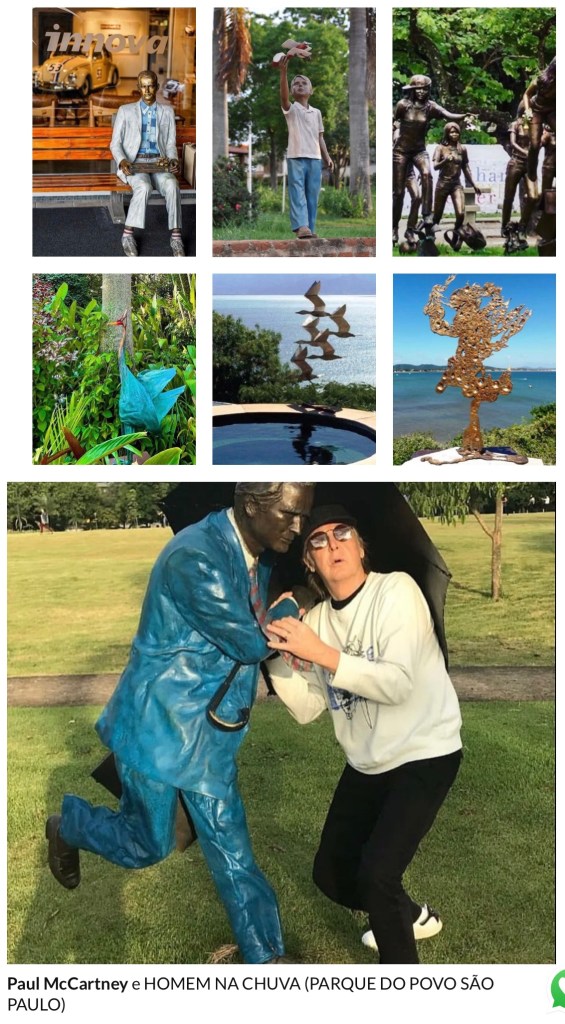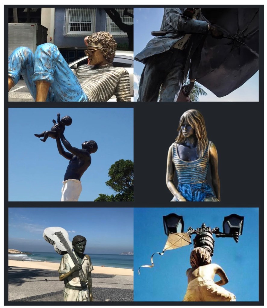 “… sou Christina Motta e você provavelmente você já conhece a escultura do Tom Jobim, no Arpoador, o Cazuza, no Leblon, o Tim Maia, na Tijuca, os Três Pescadores e a Brigitte Bardot, em Búzios, ou o Homem na Chuva, no Parque do Povo, em São Paulo e muitas outras por aí…”