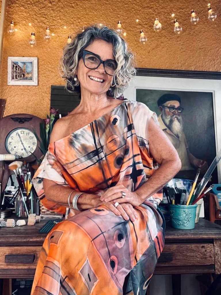Sou nascida e criada no Rio de Janeiro, e desde 2023, é a brisa de Búzios que inspira meus traços e cores. Embora formada em engenharia agronômica, com doutorado em meio ambiente pela UERJ, minha ligação com a arte vem desde a adolescência alimentada pelo olhar atento à natureza. Atuei por muitos anos com paisagismo e arborização, e tive o privilégio de ser aluna de Burle Marx na década de 80 — uma experiência que marcou profundamente minha visão estética e sensível do mundo natural. Hoje, dedico-me à pintura em aquarela sobre seda pura e outros tecidos, onde retrato plantas, vegetações e traços geográficos como uma forma de diálogo com a paisagem e a memória. Compartilho meu trabalho no Instagram @setissimaarte, onde a arte se revela como extensão da minha caminhada. “Pintar é traduzir em cor o que a alma colhe em silêncio.
