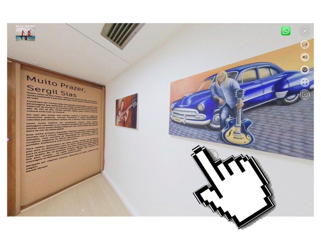 Para melhor desfrutarem da visita virtual, cliquem nas bolinhas do piso para se deslocarem entre as obras. Girem através das setinhaspara se posicionarem e cliquem nos links contendo as informações decada quadro.