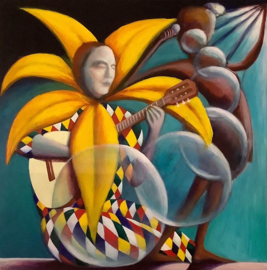 Assim como no Jazz Fusion, música que serviu de trilha sonora para a minha juventude e que amo até hoje, minha pintura mistura um pouco de tudo.